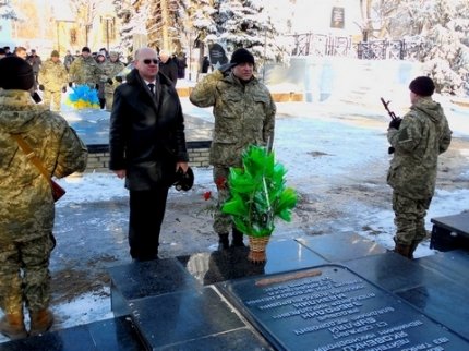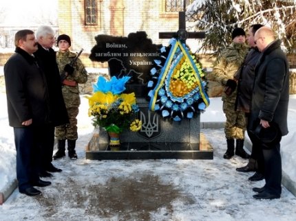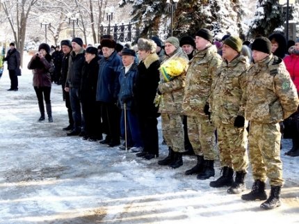 Собравшиеся возложили цветы к «Вечному огню» и к памятному знаку воинам, погибшим за независимость Украины в зоне проведения антитеррористической операции.