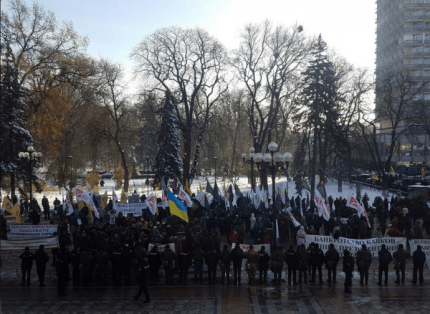 Позже стало известно, что протестующие перекрыли дорогу по улице Грушевского возле Верховной Рады.