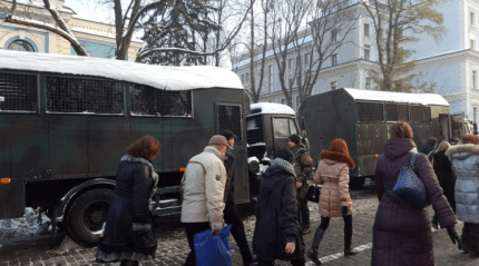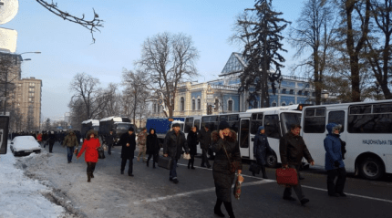 В центре Киева, возле гостиницы «Днепр» на Европейской площади, на акцию «Тарифного сопротивления» собралось около двухсот человек, несмотря на заявления об отмене протестов.
