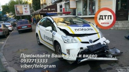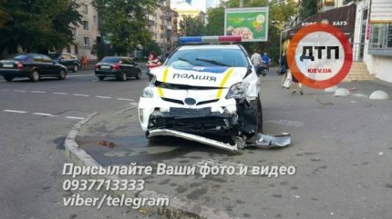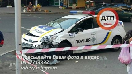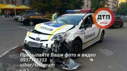 В центре Киева на улице Саксаганского произошло жуткое дорожно-транспортное происшествие с участием патрульного автомобиля Toyota Prius и Chevrolet Lacetti, пострадали четверо людей.