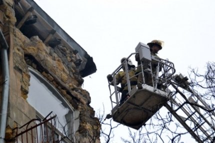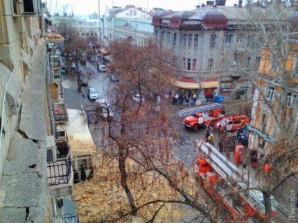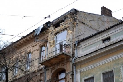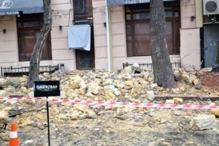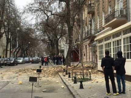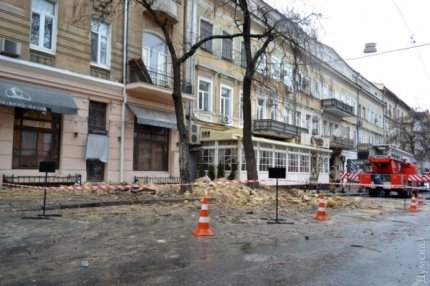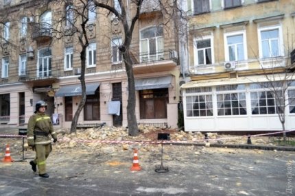 В центре Одессы, на улице Екатерининской, произошло обрушение части фасада 100-летнего дома.