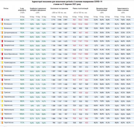 В Министерстве здравоохранения уточнили, что Киевская область попала в красную зону карантина из-за превышения коэффициента выявления новых случаев инфицирования коронавирусом, который не должен быть больше 20%. Также в области превышен допустимый уровень госпитализаций на 100 тысяч населения, который не должен быть больше 60.