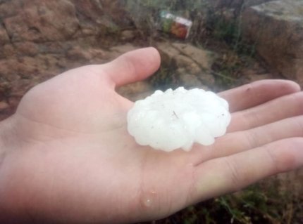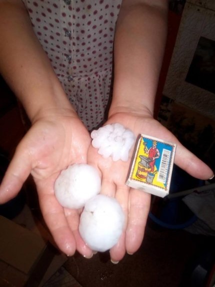 На фото и видео показано, что град в диаметре достигал 4-5 сантиметров. Он был размером со спичечный коробок.