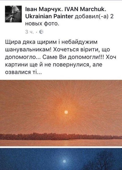 Национальная полиция Украины открыла уголовное производство по факту кражи. Апостол отмечает, что в результате поисковых действий уже были получены первые результаты - агент вышел на связь и дал обещание вернуть полотна.