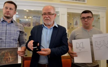 «Это двусторонняя свинцовая булла, на которой с обеих сторон изображен знак Святослава. У каждого князя был индивидуальный знак, знаком Святослава является двузуб. Его сын, Владимир Святославович, который добавил третий зуб, создал таким образом тризуб, который сейчас является государственным гербом Украины. Это видоизмененный знак его отца», – рассказал сотрудник Института археографии Национальной академии наук Украины Олег Однороженко.