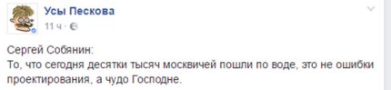 На Москву обрушился аномальный ливень, в результате чего река Яуза вышла из берегов, а в соцсетях немедленно стали иронизировать по поводу неудобств для граждан и состояния инфраструктуры столицы РФ от мэра Сергея Собянина.