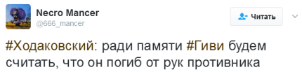 Опальный экс-главарь банды "Восток" Александр Ходаковский ради памяти одиозного боевика Михаила Толстых-"Гиви", уничтоженного 8 февраля в Донецке, предложил считать его убийство делом рук украинских спецслужб, а не последствием внутренних разборок.