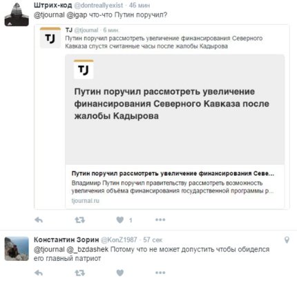 При этом в сети тут же высмеяли слабину Путина перед Кадыровым.