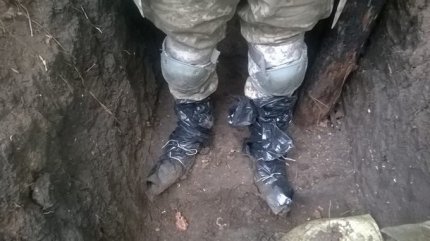 "Осень на Востоке: - Видишь, в каких я берцах - перемотал проволокой пакеты на ногах, так и воюем. - Ну что ты прибедняешься, не все у вас так плохо. - Да я шучу. Там просто грязь и мокро, а берцы перемотал, чтобы не испачкать", - говорится в сообщении.