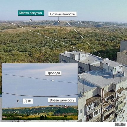 Яна Ерлашова из RT, например, заявляет, что положение проводов на снимке доказывает, что фото не могло быть сделано с балкона этого фотографа и что с того балкона на девятом этаже вообще не видно предполагаемое место запуска.