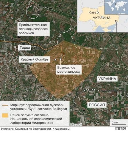 Однако в те июльские дни было опубликовано несколько фотографий, видео и записей в социальных сетях, в которых сообщалось о передвижении ракетной установки в день катастрофы из контролируемого мятежниками Донецка на восток, вглубь территории сепаратистов.