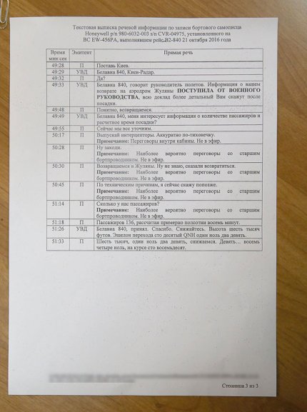 Далее в расшифровке приводятся разговоры экипажа в кабине самолета. - Че за ерунда! - Бред какой-то! - "Белавиа-840". Еще раз уточните причину. Здесь какая-то ошибка, непонятно вообще по какой причине.