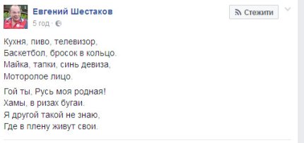 В стихотворении Шестаков вспомнил и о нынешних героях России - боевике так называемой ДНР Арсене Павлове-Мотороле, а также намекнул на последствия российской агрессии в Украине.