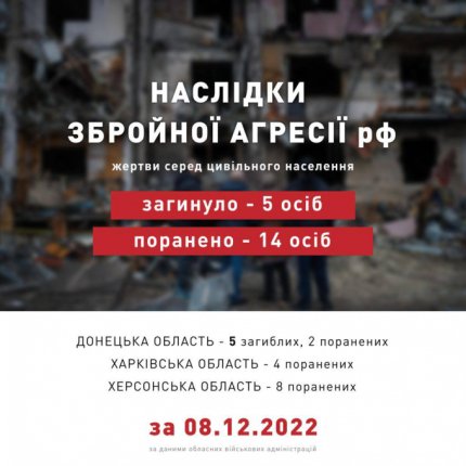 За последние сутки в результате российской агрессии погибли 5 гражданских граждан и 14 человек были ранены.