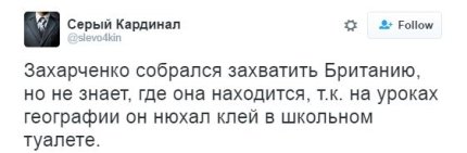 Пользователи сети обсуждают, что могло вызвать такие планы у главаря боевиков ДНР, а также отмечают, что Захарченко даже не знает, где находится Великобритания.