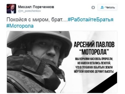 Запрещенный в Украине российский актер Михаил Пореченков, известный своей активной поддержкой боевиков на Донбассе, прокомментировал убийство боевика ДНР Арсения Павлова с позывным Моторола, назвав его братом.