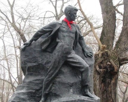 Школьники зачитали стихи и повязали на бронзовой скульптуре новый пионерский галстук.