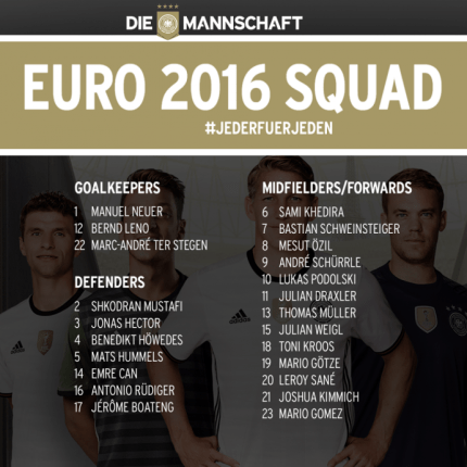 Во вторник, 1 июня, были оглашены заявки всех 24-х сборных, которые будут участвовать на чемпионате Европы во Франции.