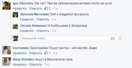 Из Бердянска сообщают. Землетрясение ощущалось неравномерно по городу. В той его части, которая восточнее, народ ощутил незначительный толчок "сидел на диване, как будто колыхнуло". Кто знаком с географией города, такие эффекты наблюдались в районе "Спорткомплекса", где дорога начинает спускаться к порту и далее по Мелитопольскому шоссе к черте города. Далее все стремительно сошло на нет. Если в районе черты города толчок еще ощущался, то в 500-700 метрах за его чертой - уже практически нет. О разрушениях речь не идет", - написал журналист, шеф-редактор "Апострофа"Денис Попович на своей странице в Facebook.