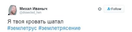 Политический эксперт Евгений Магда в Facebook написал: "Землетрясением нас давно не отвлекали. Я не слышал".
