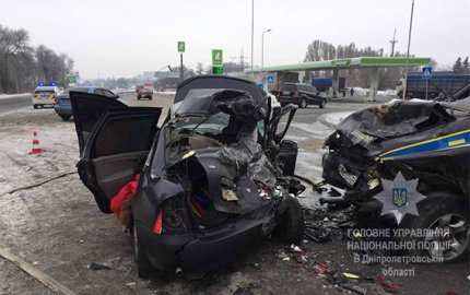 В Днепре утром 2 февраля автомобиль Lada Kalina врезался в авто частной охранной фирмы УАЗ "Патриот", в результате ДТП погибли три человека.
