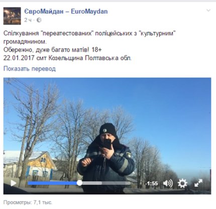 «Общение "переаттестованных" полицейских с "культурным" гражданином. Осторожно, очень много матов! 18+. 22.01.2017 год, пгт Козельщина Полтавской области», - так подписано видео.