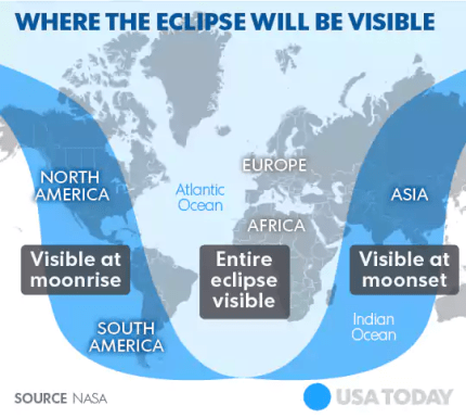 Астроном Джефф Честер из Военно-морской обсерватории США рассказал, что к середине затмения, в 05:44 часа по киевскому времени, северная треть Луны будет заметно темнее. Наблюдать такое явление можно будет на протяжении двух часов. В NASA сообщают, что затмение будет видно из Европы, Африки, Западной Азии и восточной части Северной и Южной Америки.