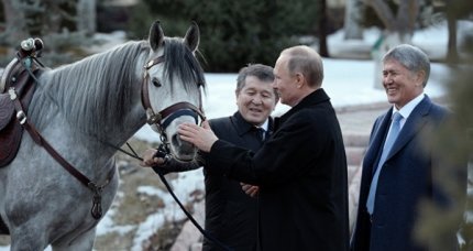 "Он погладил коня и покормил его морковкой": Атамбаев подарил Путину киргизского скакуна", - прокомментировал подарок российский пропагандист.