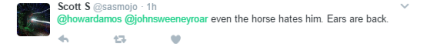 "Даже лошадь его ненавидит. Уши назад".