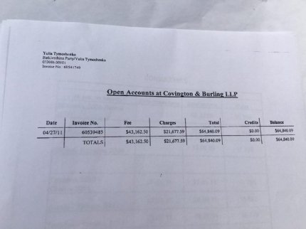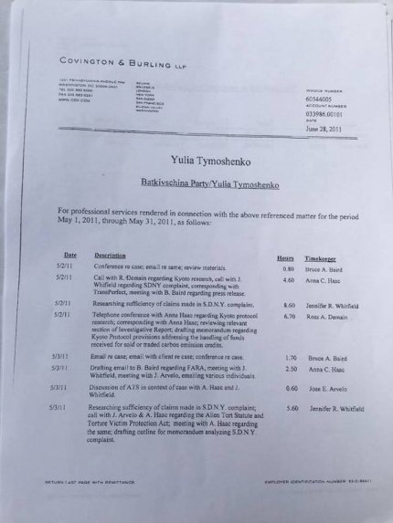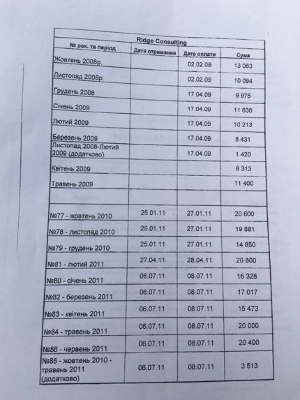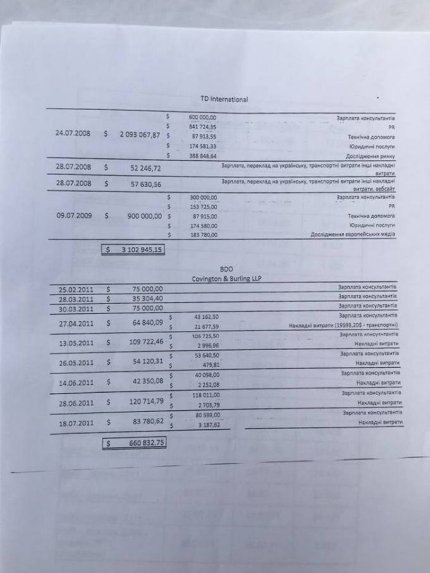 "В моем распоряжении оказались документы, согласно которым, "Батькивщина" оплачивала юристов и пиар для своего лидера Юлии Тимошенко. Суммы баснословные – $900 тыс, $2,01 млн... В платежках указана весьма известная американская фирма Covington&Burling. Документы охватывают период с 2008 по 2011 годы", - написал Бочкала.