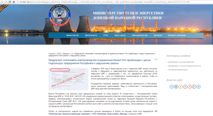 Кроме того, на сайте так называемого «министерства угля и энергетики ДНР» прямо указывается, что принимать платежи за электроэнергию у населения на территории, подконтрольной боевикам Захарченко, могут только две компании. Одна из которых — как раз тот самый «Энергосервис «Виколд».