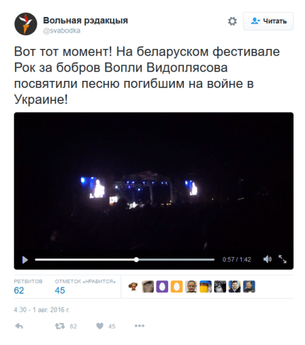 Известная украинская группа "Вопли Видоплясова", лидером которой является Олег Скрипка, во время концерта в Минске посвятила песню под названием "Країна мрій" погибшим украинским бойцам на Донбассе.