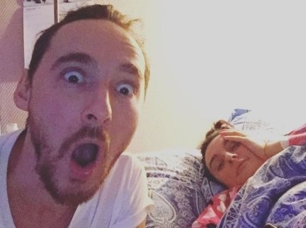 "Лежу себе спокойно, болею, вдруг - заносят, как вы думаете, кого??? Положили, капельницу поставили, лежит себе беззащитная, делай что хочешь", - написал супруг артистки в своем Instagram, опубликовав соответствующее фото.