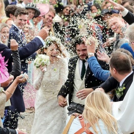 В сети уже появились первые видео со свадьбы Кита Харингтона и Роуз Лесли. На кадрах показано, как гости встречают молодоженов, осыпая их рисом и лепестками роз. Также в роликах запечатлели трогательный момент, когда Роуз Лесли направляется в церковь в сопровождении отца для того, чтобы дать одну из самых важных клятв в своей жизни.