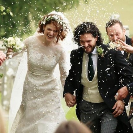На свадьбе героев "Игры престолов" присутствовало много гостей, среди которых были замечены ряд звезд. Среди них присутствовали Софи Тернер, Питер Динклэйдж, Эмилия Кларк, Малин Акерман, Джек Доннелли и другие. Известно, что со всех гостей мероприятия взяли клятву, что они не будут разглашать подробности торжества.