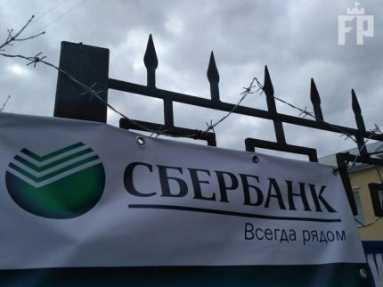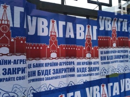 У Запоріжжі активісти "Національного корпусу" заблокували центральний офіс російського "Сбербанку".