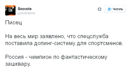 Після заяви Всесвітнього антидопінгового агентства з підтвердженням інформації про підміну аналізів російських спортсменів з відома міністра спорту РФ і за допомогою співробітників ФСБ на Олімпіаді в Сочі соціальні мережі вибухнули їдкими коментарями.