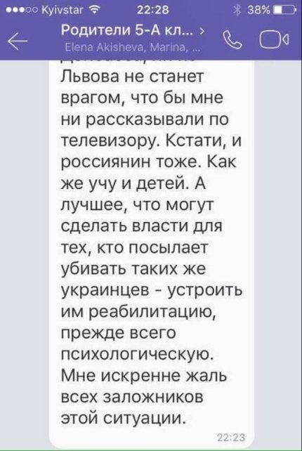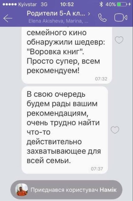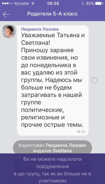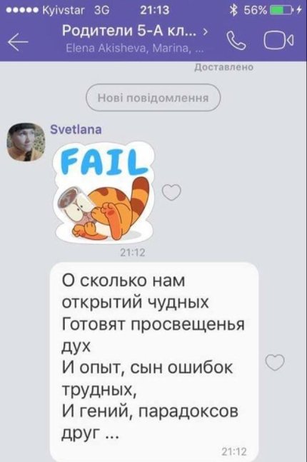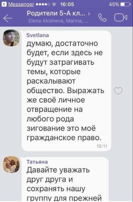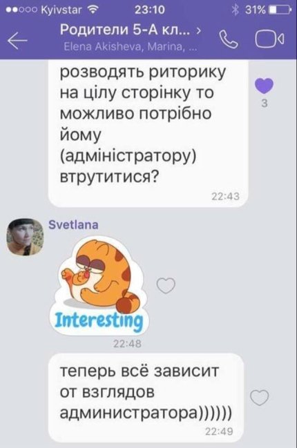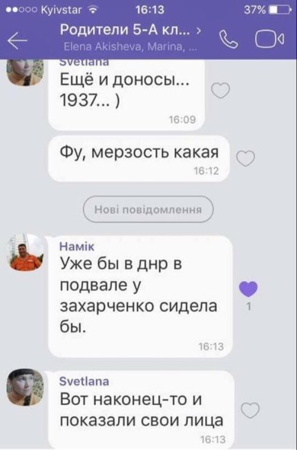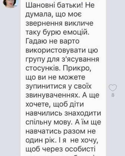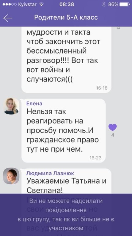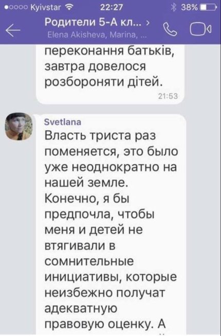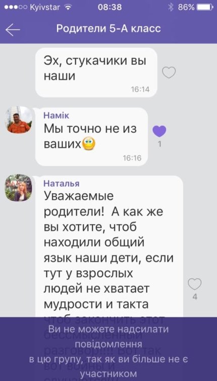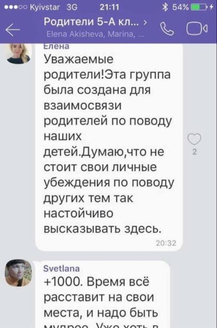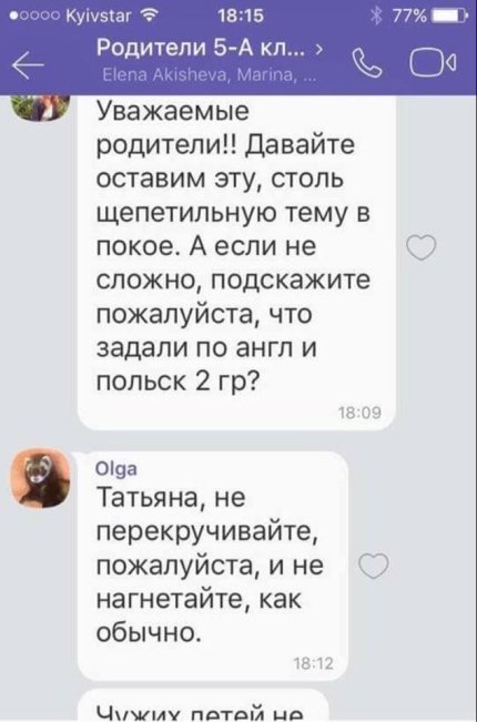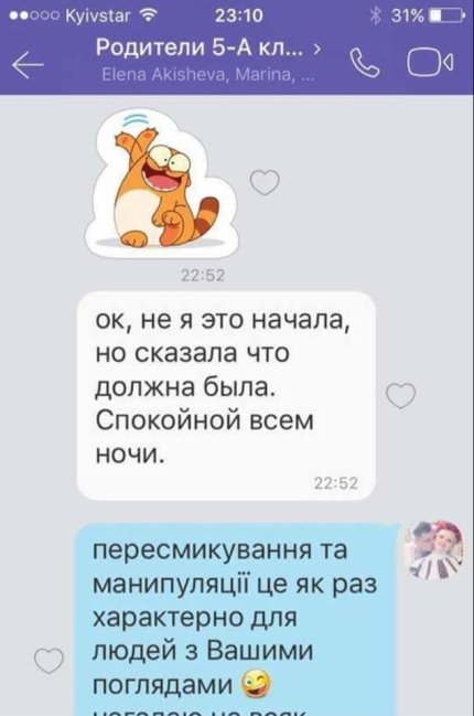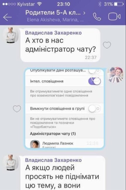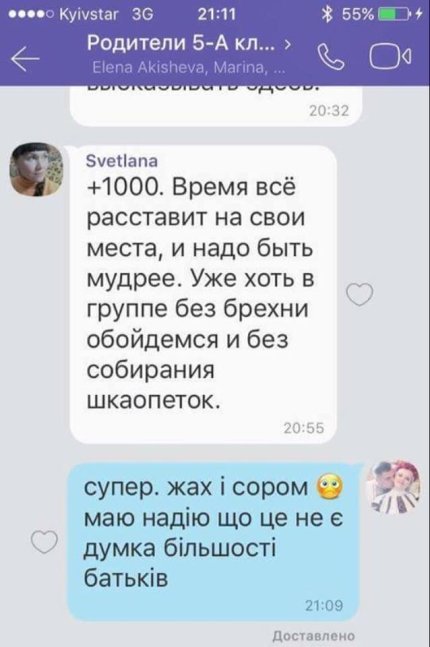 "Раніше читала, що вайбер-групи батьків - це пекло, але поки самій не припекло, до кінця не вірила, що це таки так", - написала мати одного з учнів, Тетяна Попова.