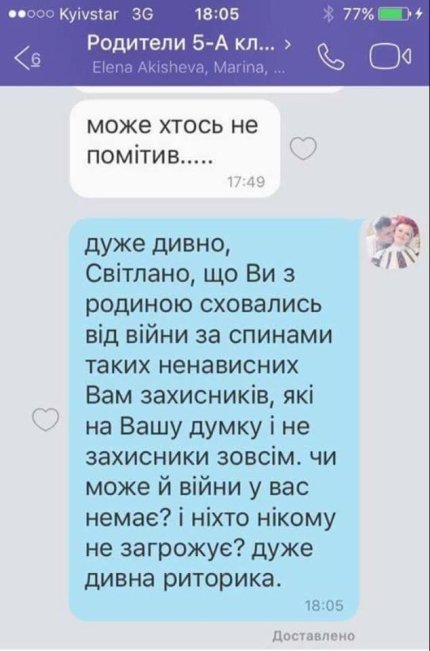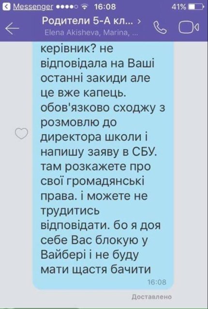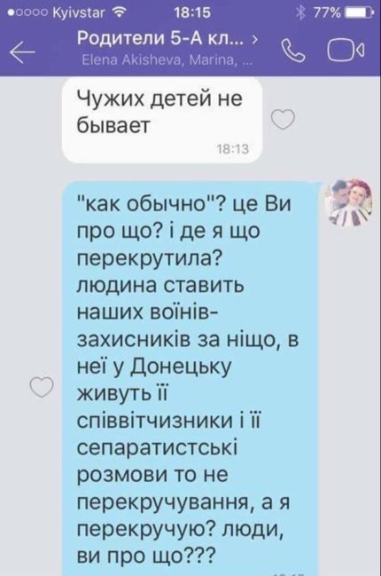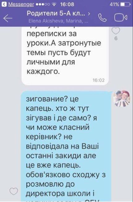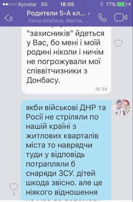 Також вона опублікувала скріншоти розмови, яка відбулася в чаті батьків цього класу.