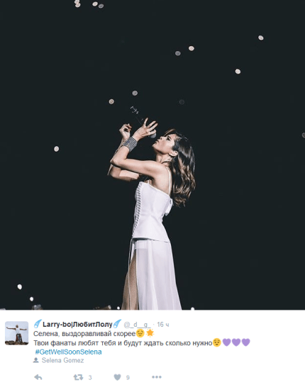 Фанати запустили в соціальній мережі флешмоб і в хештегу #GetWellSoonSelena пишуть слова побажання якнайшвидшого одужання.