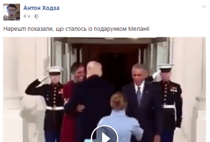 У мережі з'явилося жартівливе відео, на якому показано, що трапилося з таємничим дарунком Меланії Трамп, який вона вручила Мішель Обамі в день інавгурації президента США Дональда Трампа.