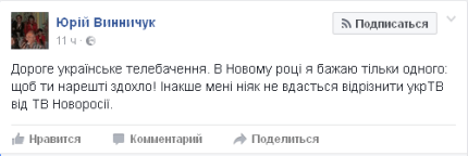 "Дороге українське телебачення. У Новому році я бажаю тільки одного: щоб ти, нарешті, здохло! Інакше мені ніяк не вдасться відрізнити від укрТВ ТБ "Новоросії", — написав він.