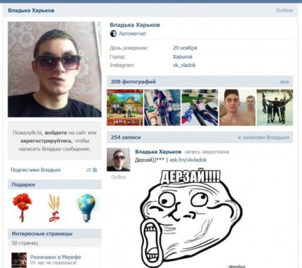 «Знайомтеся, це Влад. Влад - співробітник Харківської поліції. Правда, місце роботи вказує "Росія. ПМОП Беркут", - написав він.