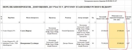 Продюсери просять 15 млн на "Слугу народу" і 35 млн - на мультфільм. У зведеній таблиці Держкіно, де містяться результати першого етапу державного пітчингу (презентації проектів фільмів перед експертною комісією) кінопроектів, "Слуга народу" значиться в категорії "Ігрові повнометражні національні фільми (широка глядацька аудиторія)", а "Повернення Гуллівера" - "Анімаційні повнометражні Фільми".