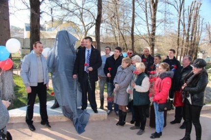 Пам'ятник встановили біля входу в Бахчисарайський парк мініатюр. Він зображує людину в камуфляжі, який тримає на руках кота. Автор пам'ятника - директор Бахчисарайського парку "Крим в мініатюрі на долоні" Віктор Жиленко.
