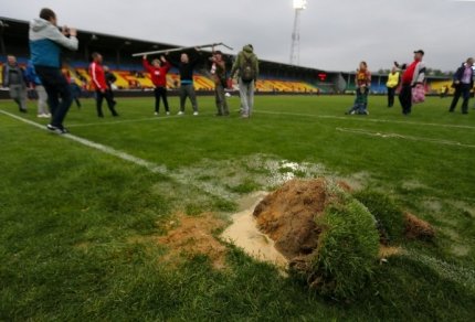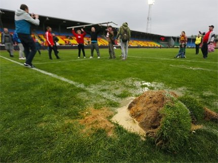 "Найголовніша проблема - поломка системи підігріву поля. Через це на поле вилилося до шести тонн тосолу. Тепер карний майданчик біля північних воріт вимагає заміни трав'яного газону на площі сім на сім метрів. Часу прижитися траві майже немає, але "Арсенал" впорається з цією ситуацією. Людям доведеться працювати 24 години на добу, але ми виправимо ситуацію", - сказав прес-аташе тульського "Арсеналу" Євгеній Овсянников.