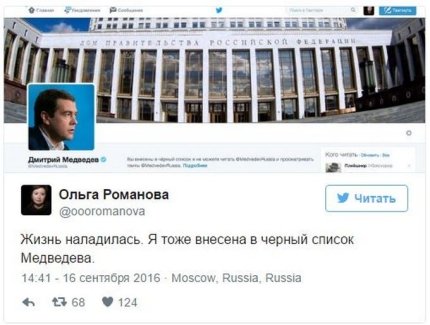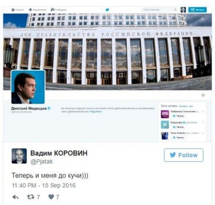 Також він навів скріншоти сторінок користувачів, яких заблокував глава російського уряду. У мережі посміялися над таким вчинком глави уряду РФ.