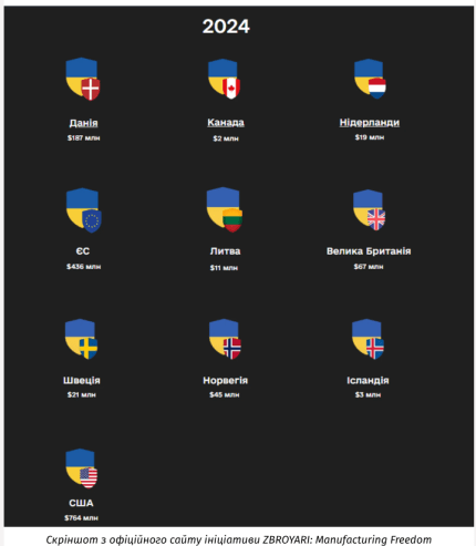 Що важливо розуміти, на сайті ZBROYARI: Manufacturing Freedom зібрано дані про всі пожертви західних партнерів на купівлю продукції українських оборонних заводів.