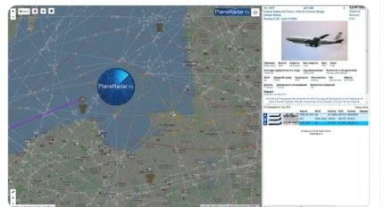 Повідомляється, що бойовий літак США вилетів на розвідку до кордону Росії з авіабази, розташованої в Німеччині. Одночасно з ним також виконував політ літак радіотехнічної розвідки ВПС США RC-135V.