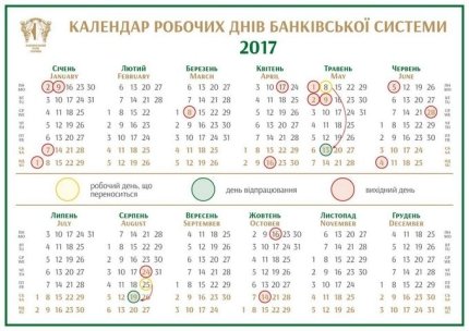 В НБУ також опублікували детальну інфографіку вихідних і робочих днів в Україні: